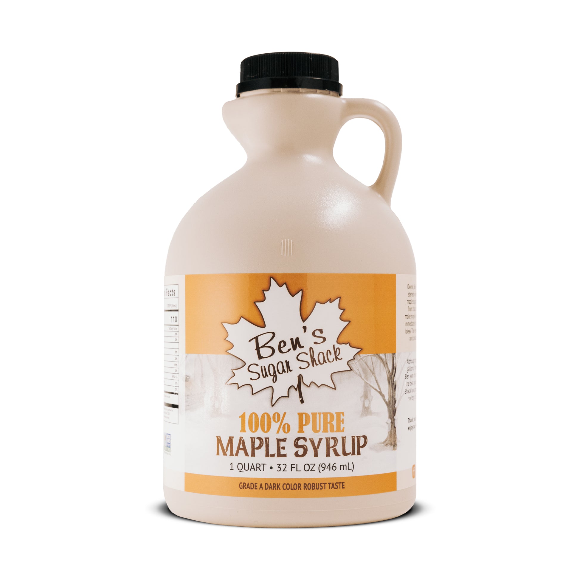 100% Pure Maple Syrup in a one quart plastic jug. Available in all 3 grades.