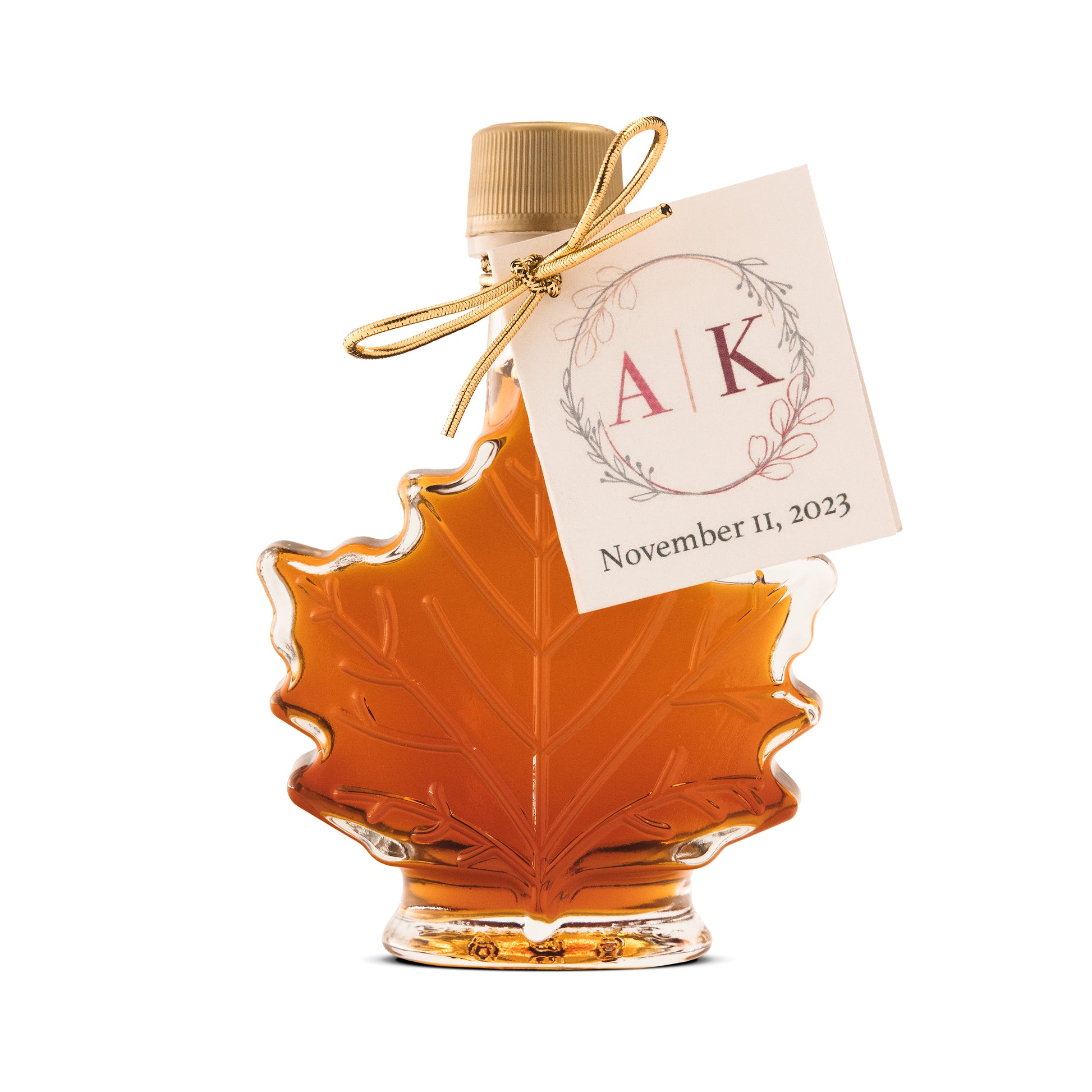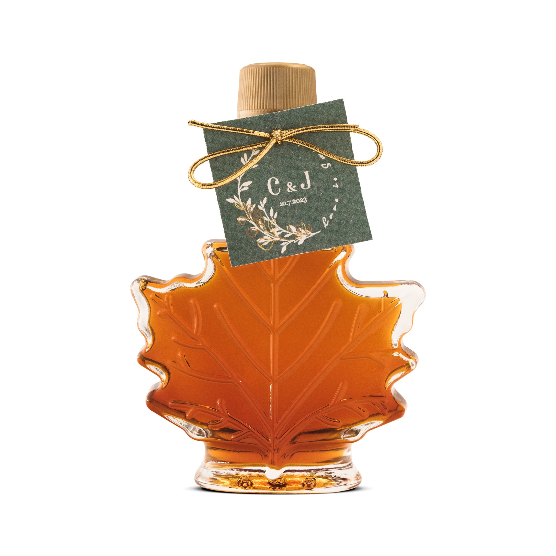 Pure Maple Syrup Favors - Glass Leaf Bottle - 1.7 oz - CUSTOM TAG