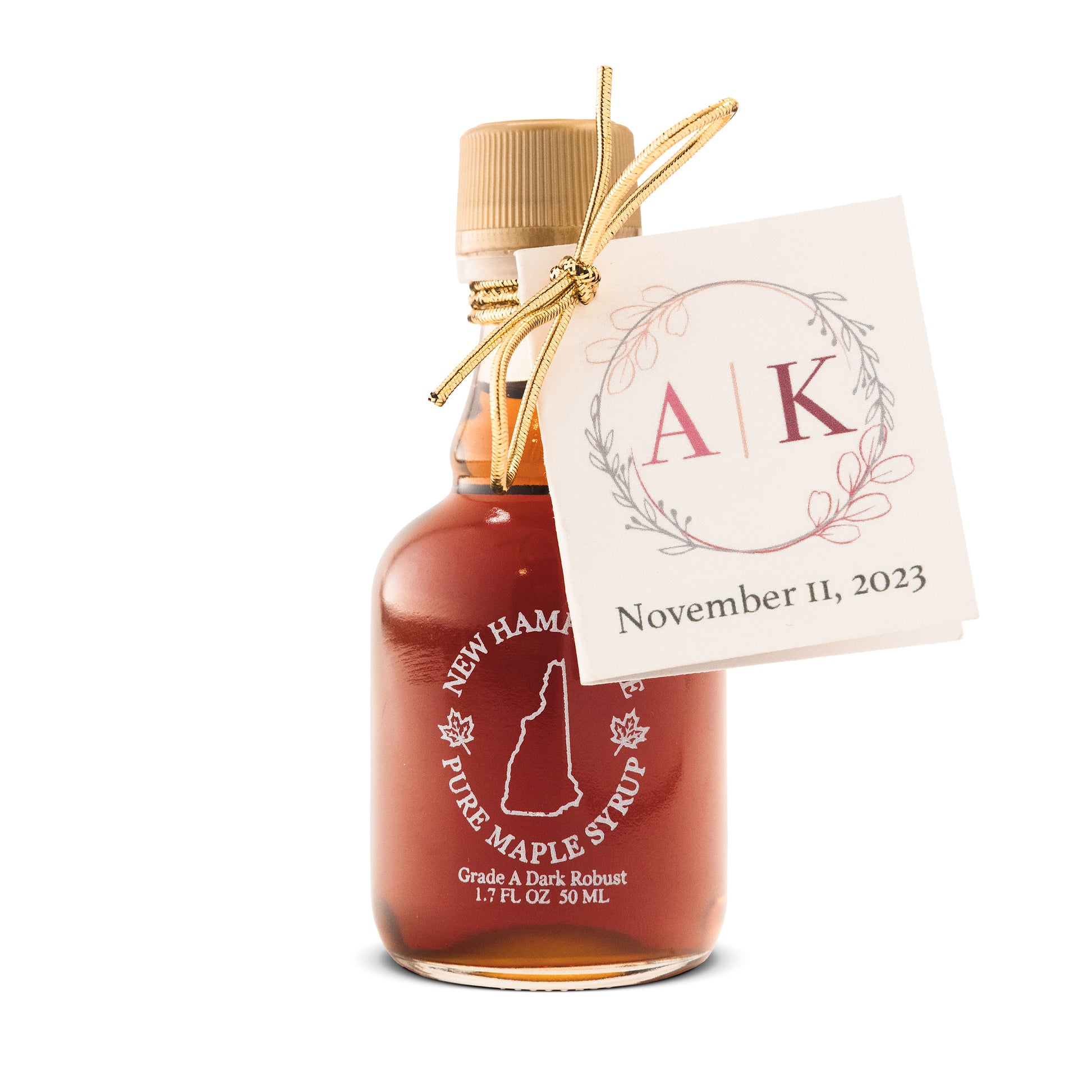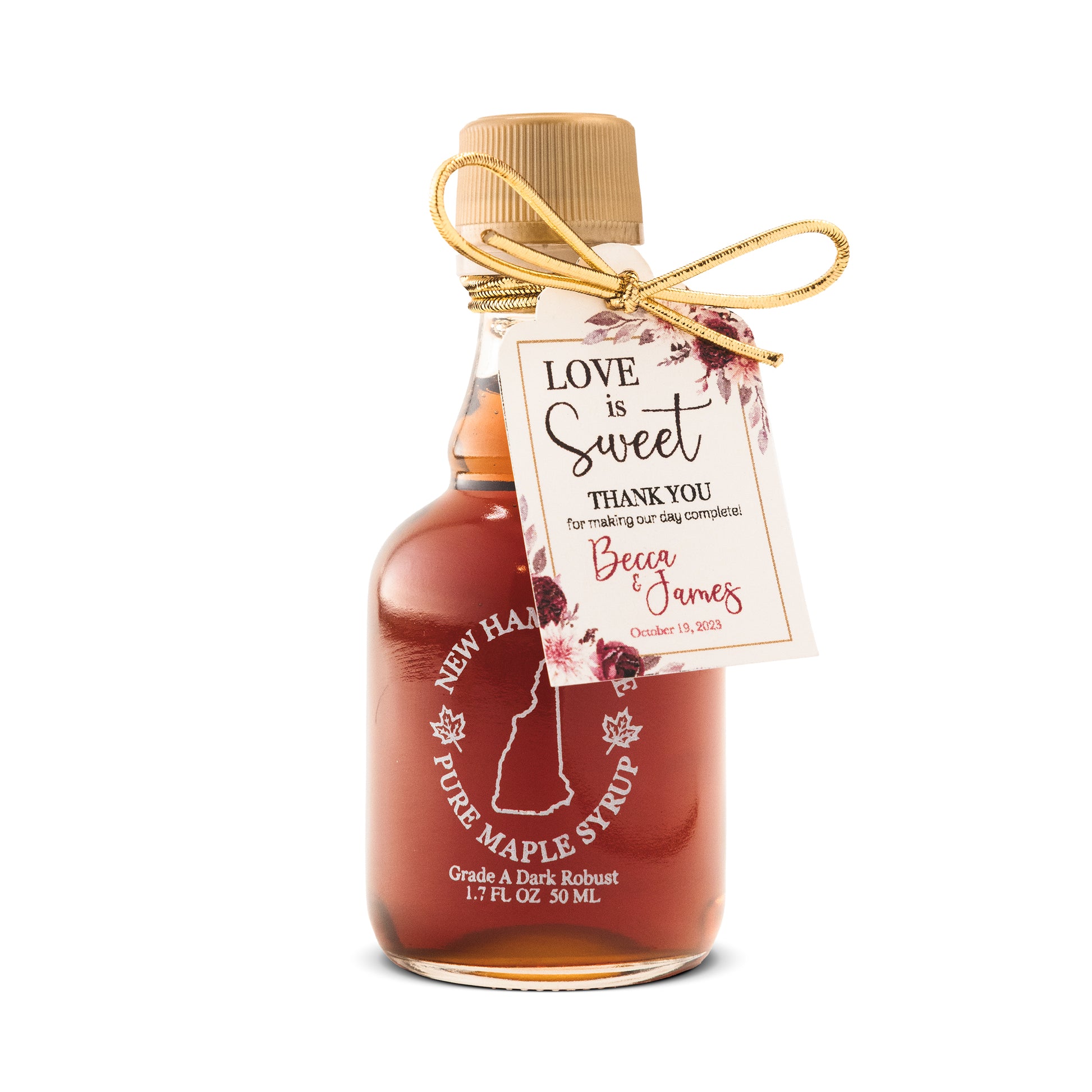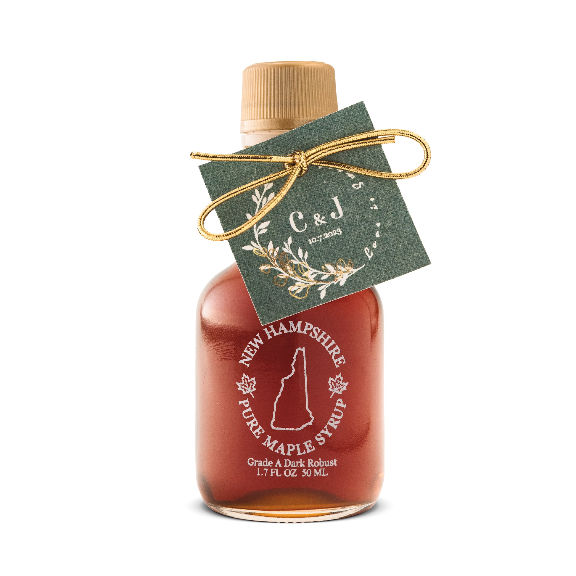 Pure Maple Syrup Favors - New Hampshire Glass Nip Bottle - 1.7 oz - CUSTOM TAG