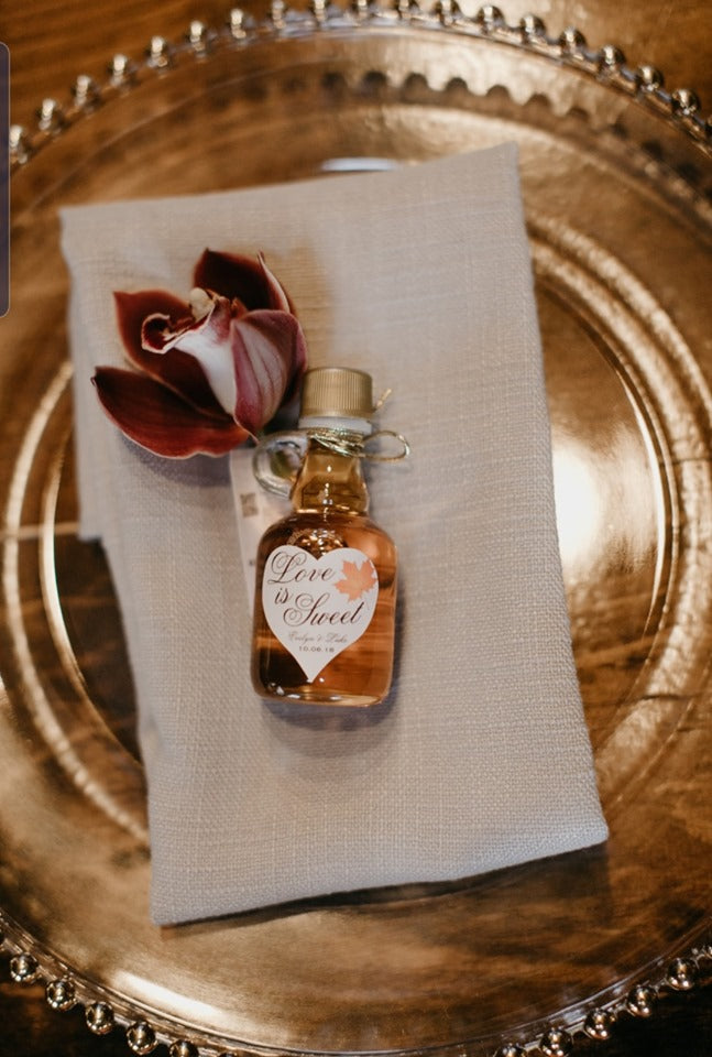 These are classy and unique favors that fit into any venue. Love is Sweet, Just like our 100% Pure maple syrup. Your guests will love these favors and won't forget them on their tables!