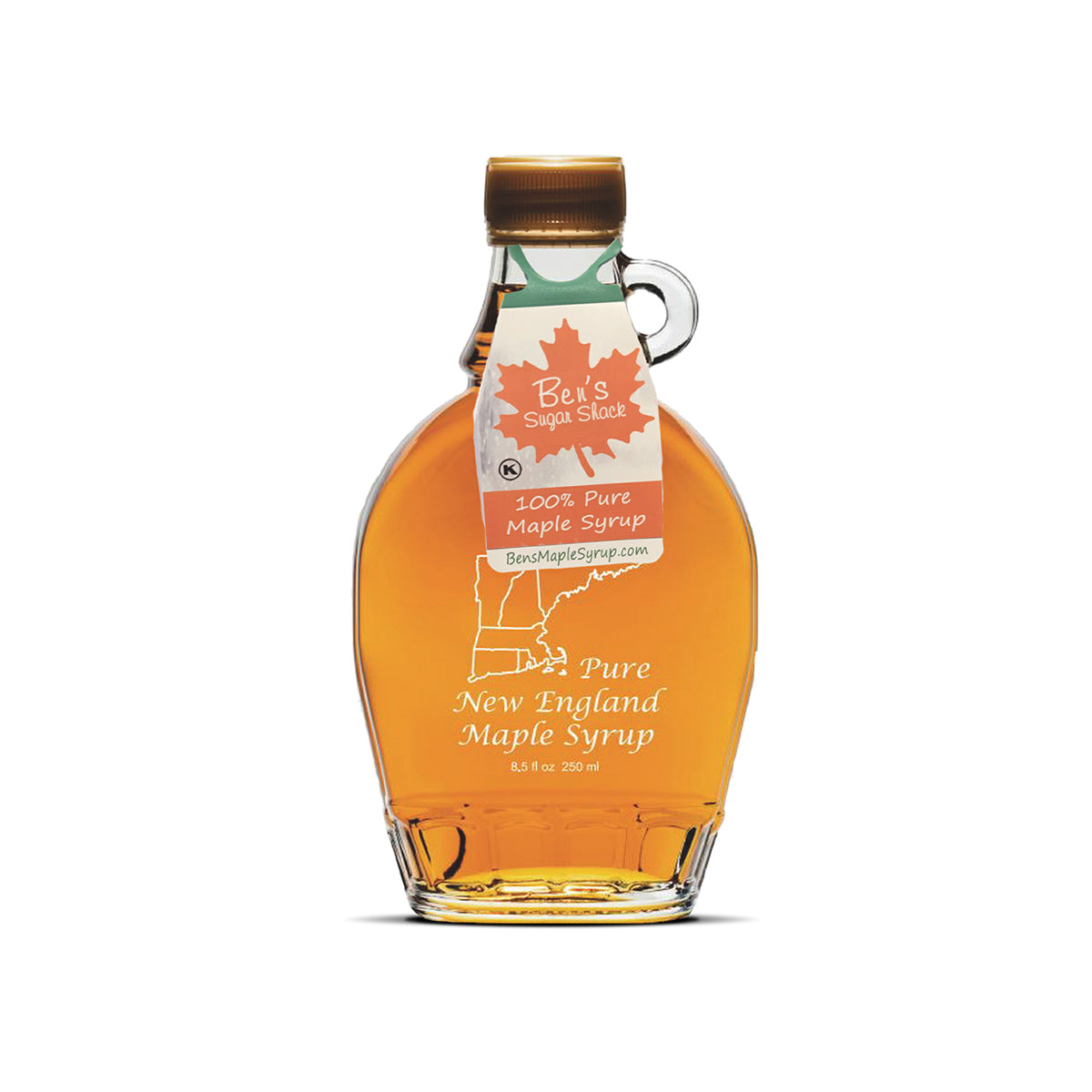 100% pure maple syrup in a fancy glass printed flask bottle. New England State Design (8.45 oz) All of our Maple syrup is bottled in a Nut Free Facility in Temple New Hampshire. There are no preservatives or additives to Ben's Pure Maple Syrup. Maple syrup has many uses and many don't realize the health benefits that comes with consuming this pure liquid gold from nature.