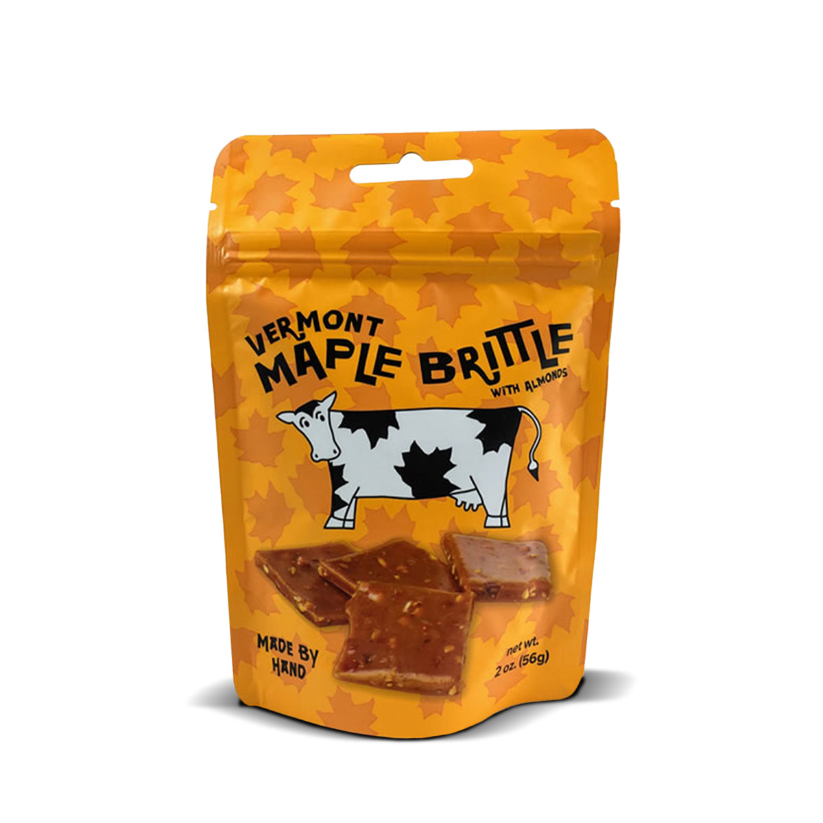 Think English toffee with crushed almonds made with pure Vermont maple syrup and creamy Vermont butter. Snapping-crisp, buttery and not overly sweet, this all-natural confection is handmade in small batches.